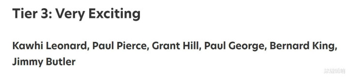 第三档(6人):小卡、乔治、格兰特希尔、皮尔斯、伯纳德金和巴特勒