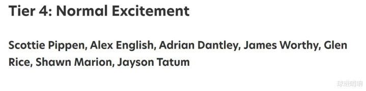 第四档(7人):皮蓬、英格利什、丹特利、詹姆斯沃西、格伦莱斯、马里昂和塔图姆