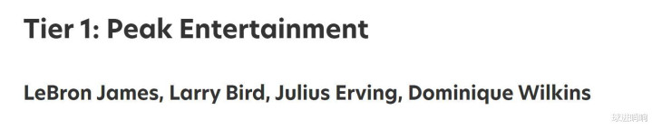 第一档(4人):詹姆斯、伯德、朱利叶斯欧文和多米尼克威尔金斯